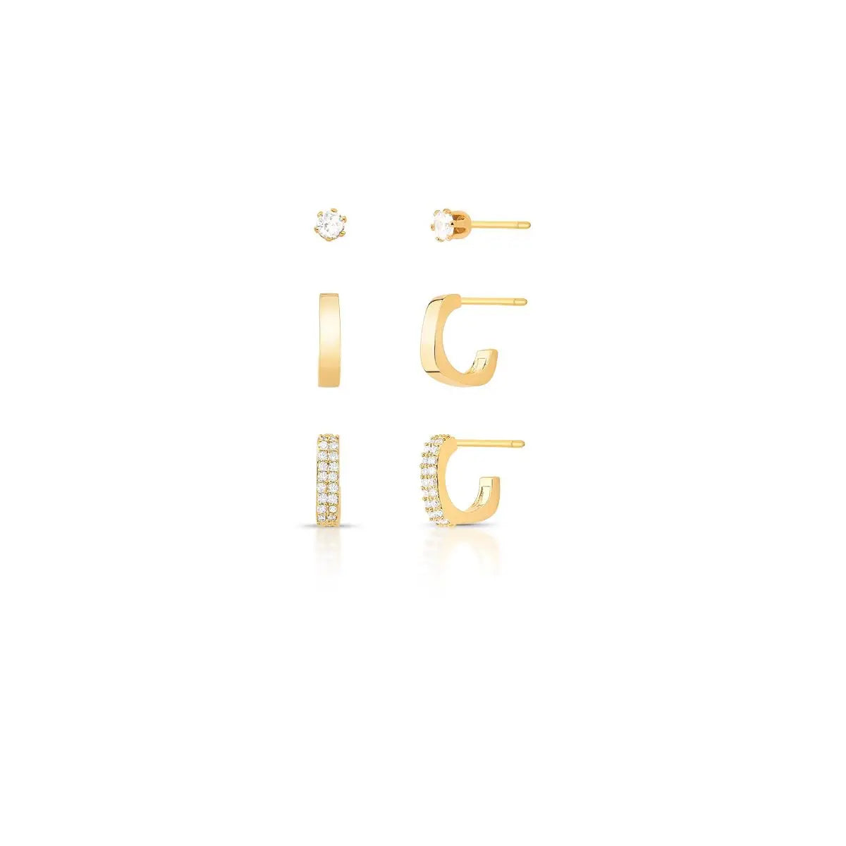 Trio Set Ð Half Hoop with Round Crystal, Gold Plated